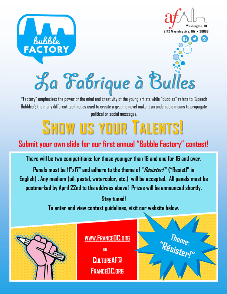 Bubble Factory Contest, Judge for international competition, Alliance Française, 2016. |