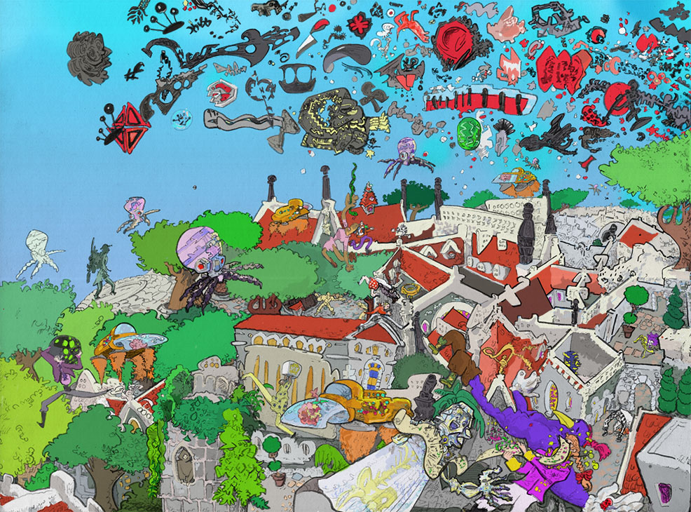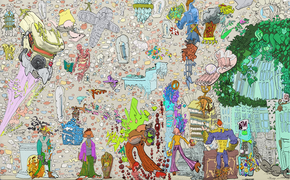 chorai, ballpoint pen with digital coloring, 2016.