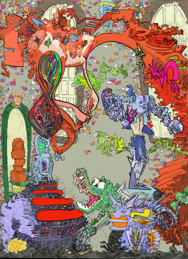 UPROARIOUS servitude to any reflection, pencil with digital coloring, 2019. | |||