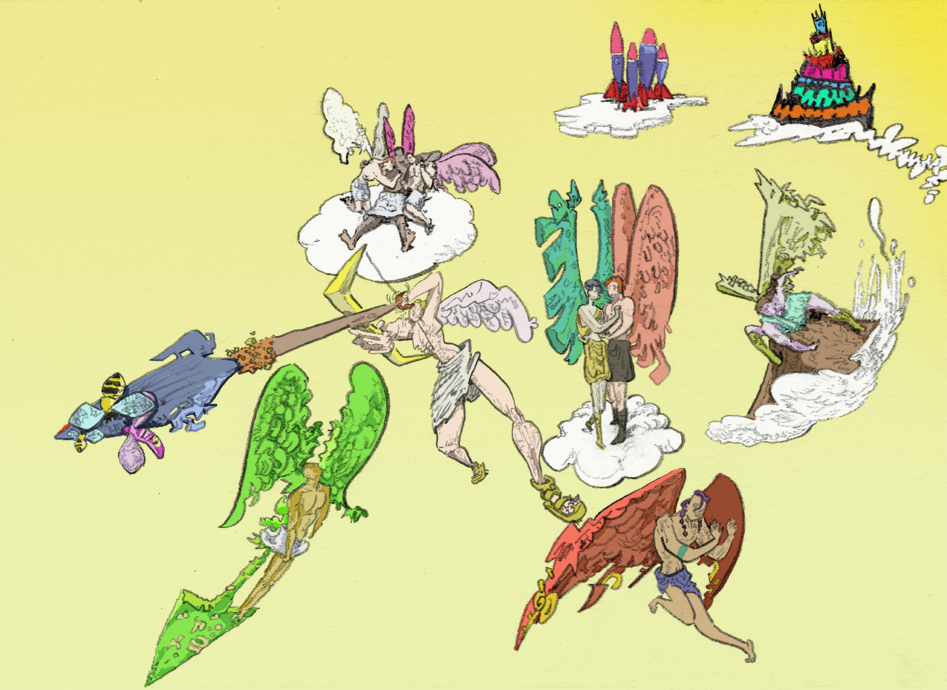 diverse angelic war, pencil with digital coloring, 2017.