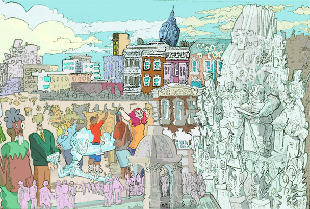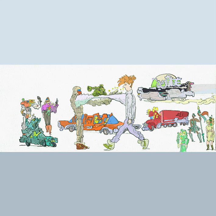 SPRT on the STRWY, pencil with digital coloring, 2017.