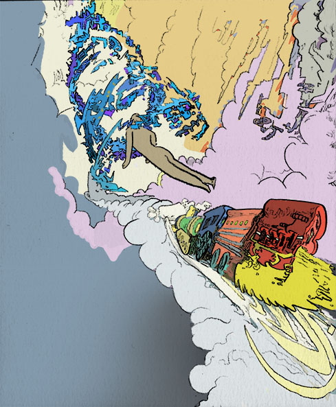 piss / cloud / spill at safety mountain, pencil with digital coloring, 2019. | |||