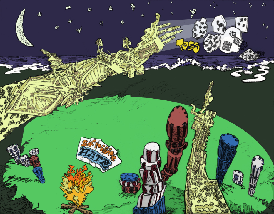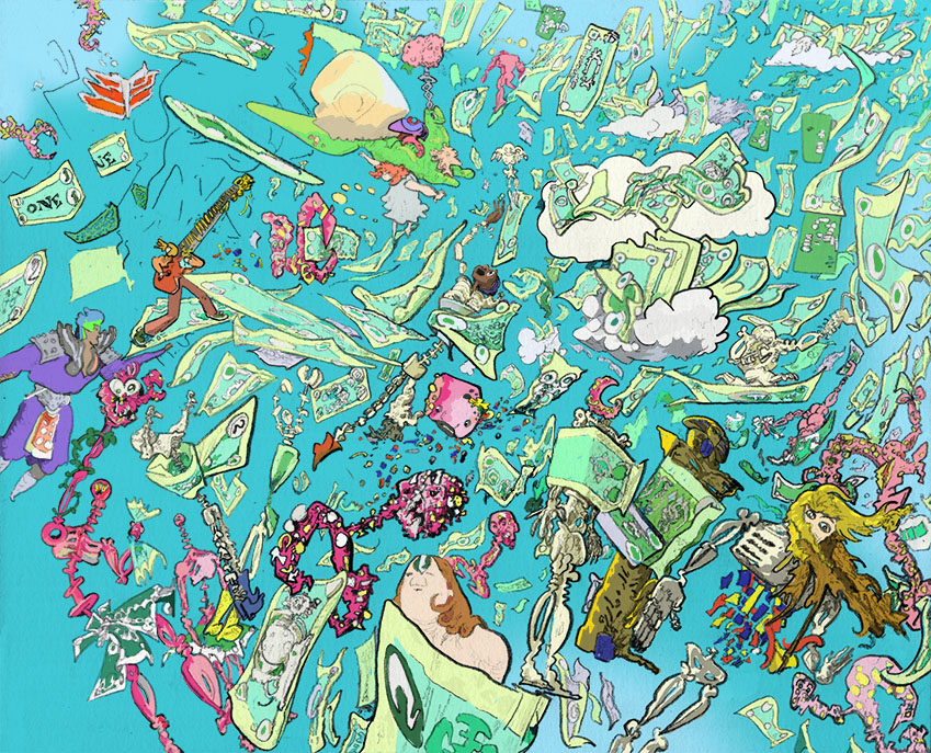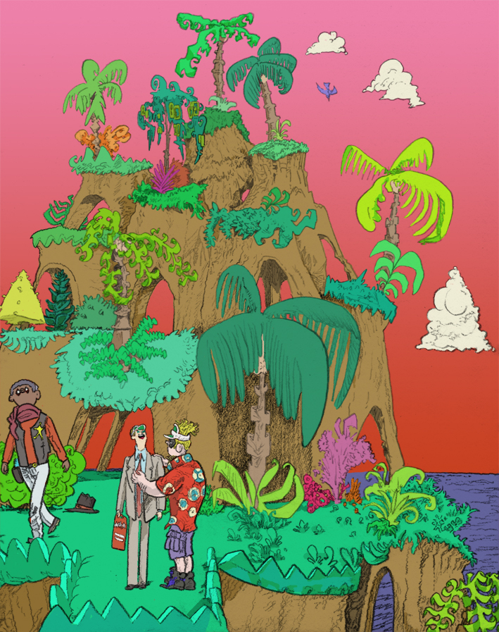 bankers' island, pencil with digital coloring, 2017.