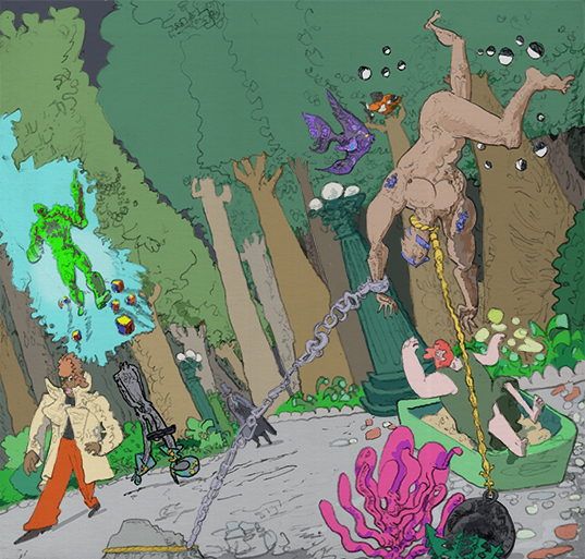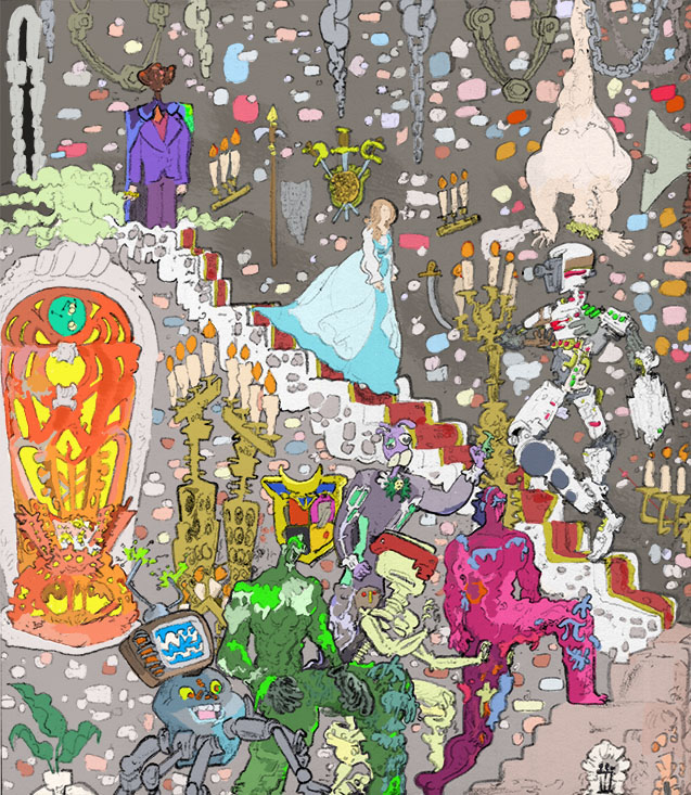 chamber feastings, pencil with digital coloring, 2021. | |||