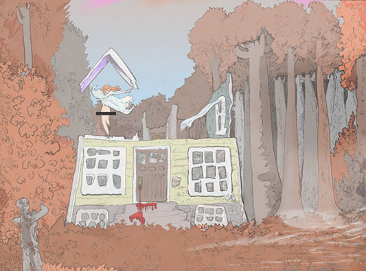 PICKET HOUSE, pencil with digital coloring, 2019. | |||