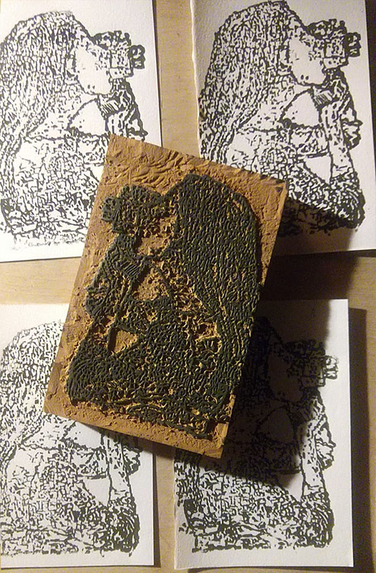 camerawoman, lhand-carved linocut, 2020. | |||