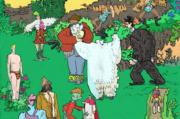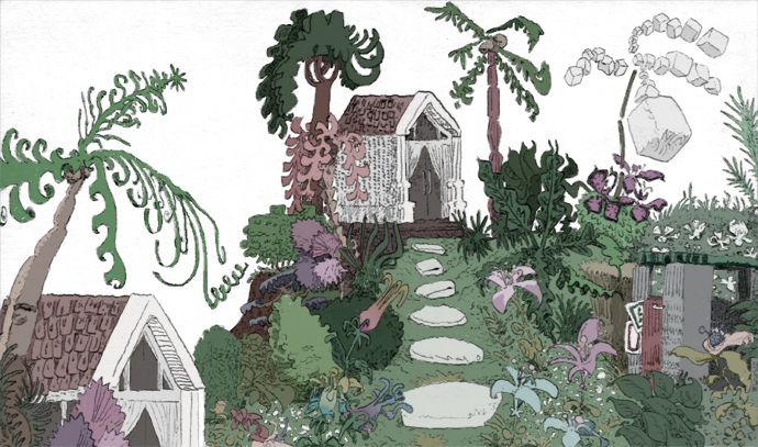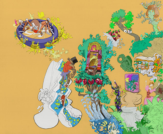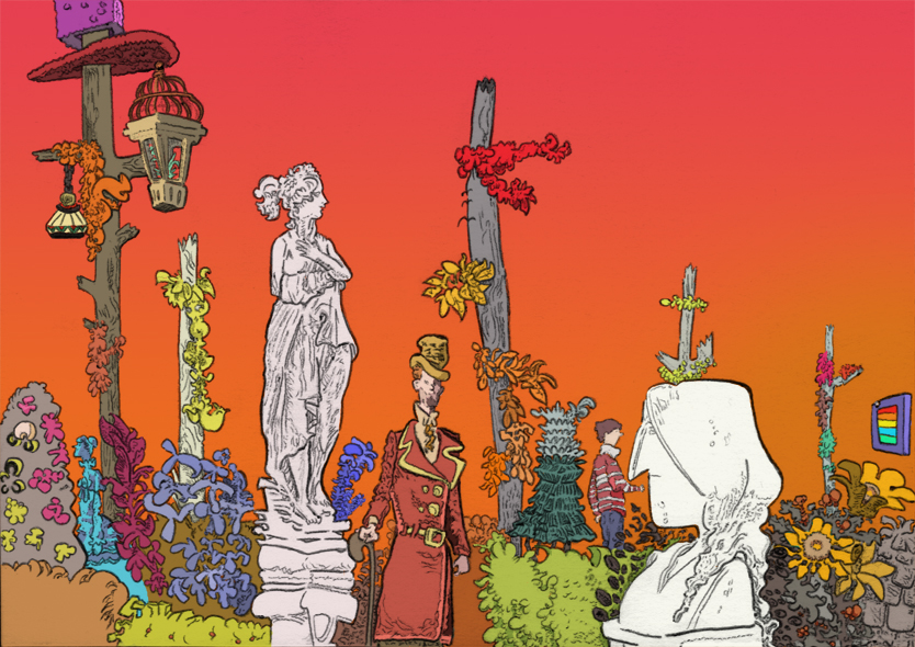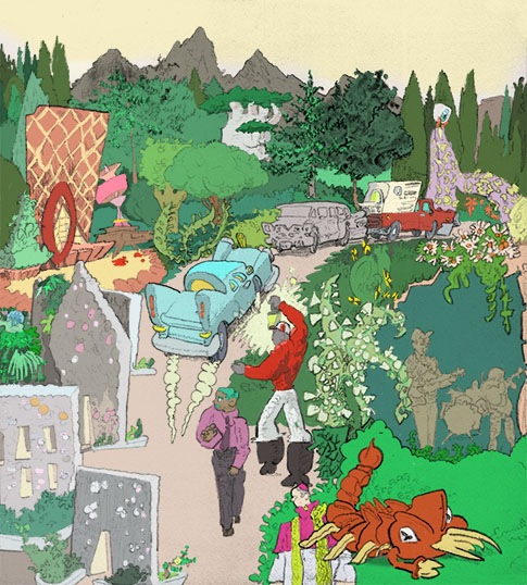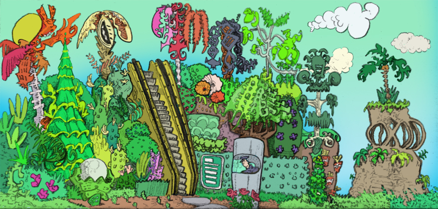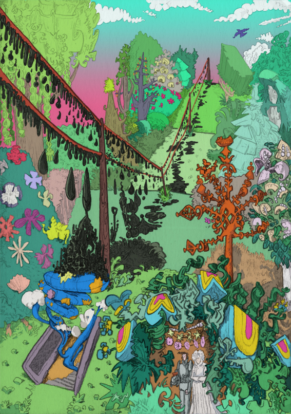 garden hijinX, pencil with digital coloring, 2019. | |||