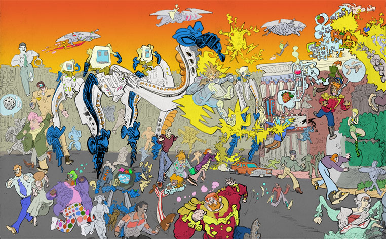 Marble Thomas, ballpoint pen with digital coloring, 2016. |