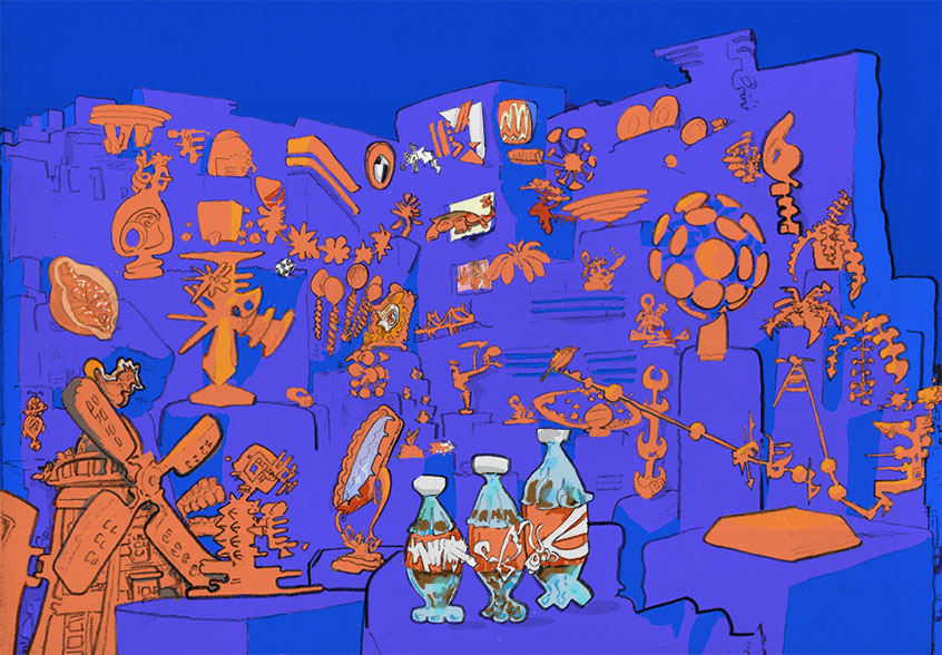 some urns for the road, pencil with digital coloring, 2019. | |||