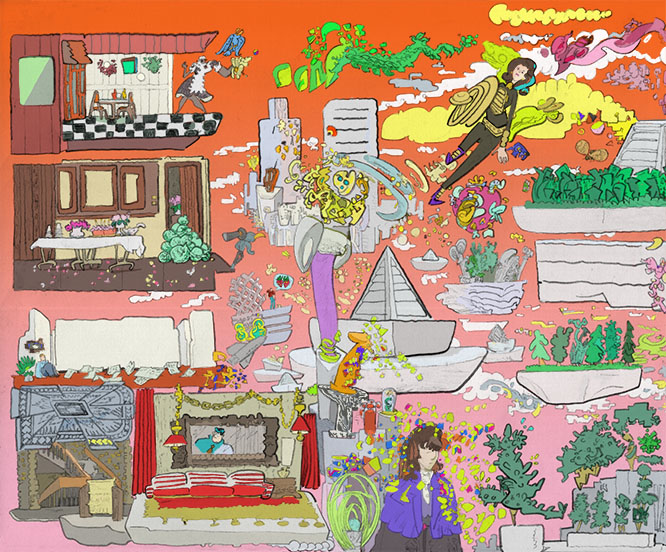 Diana and her interiors, pencil with digital coloring, 2020. | |||