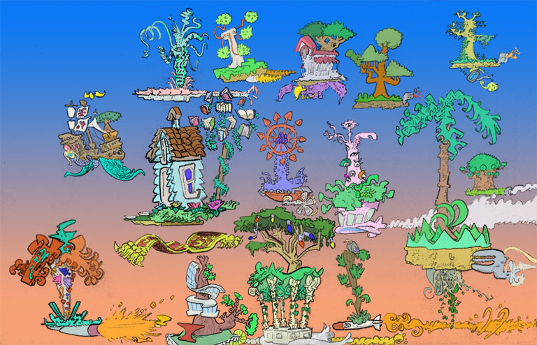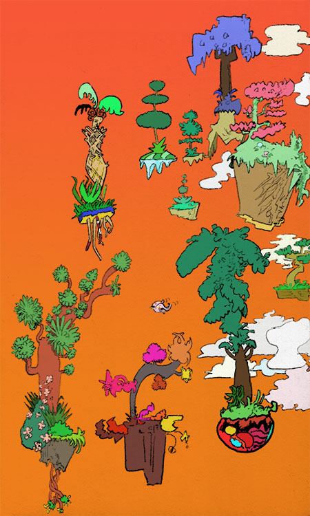 trois trees, pencil with digital coloring, 2020. | |||
