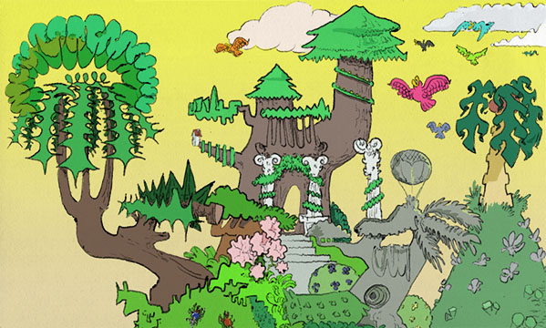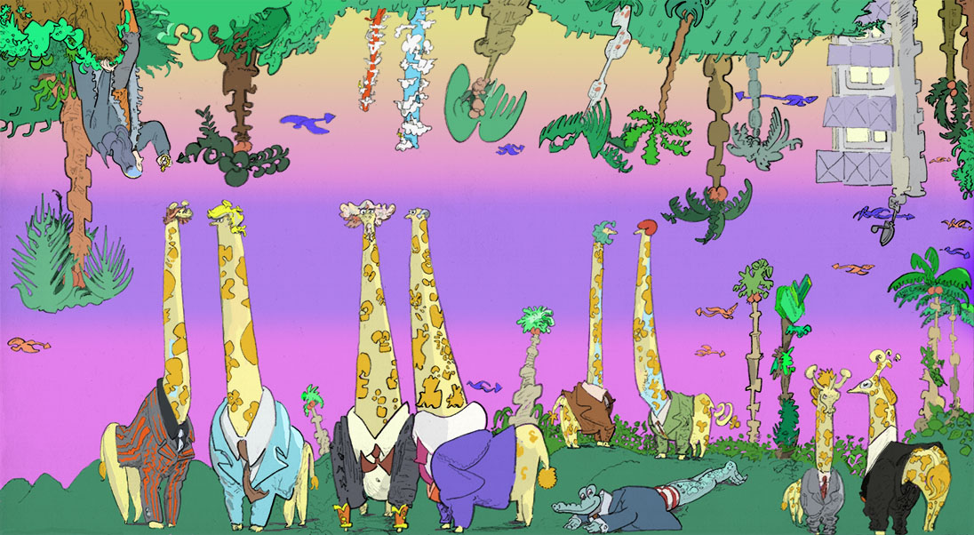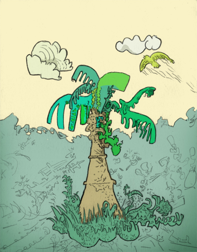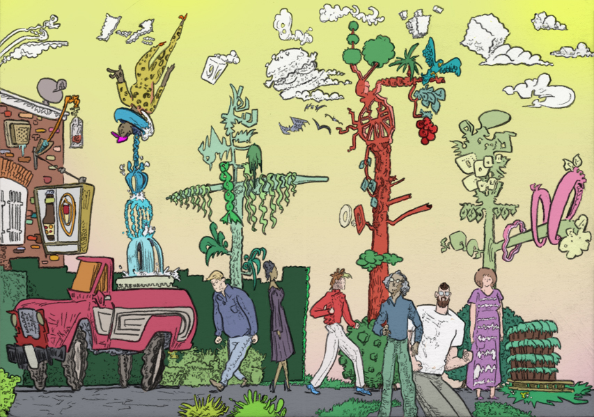 jungle mall, pencil with digital coloring, 2021. | |||