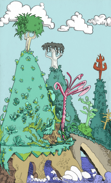 911 trees, pencil with digital coloring, 2018. | |||