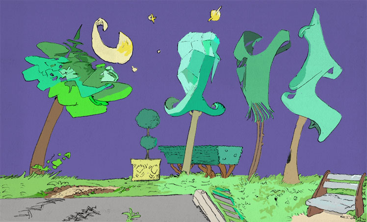 trees study, pencil with digital coloring, 2019. | |||