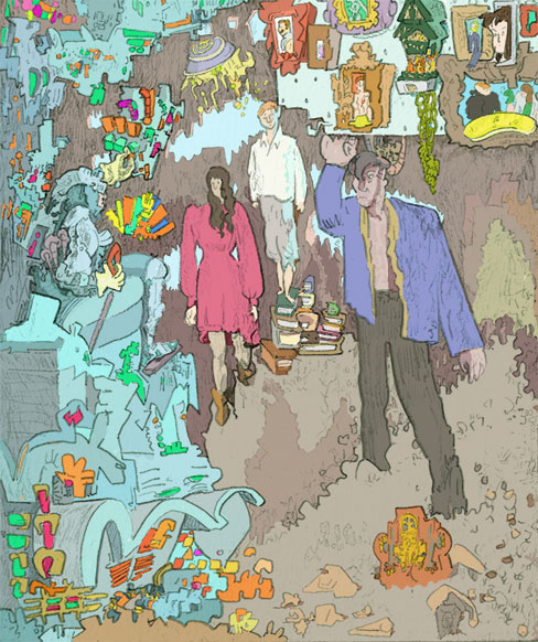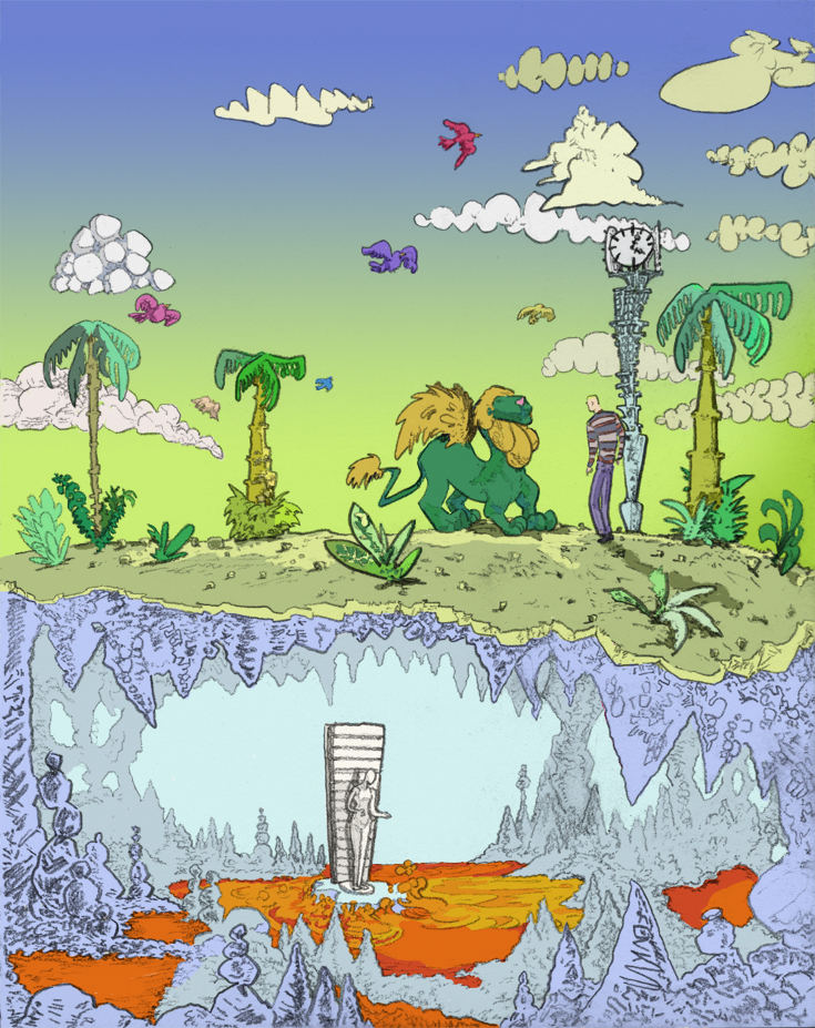 Librarian safari to the chamber of human compulsion, pencil with digital coloring, 2019. | |||