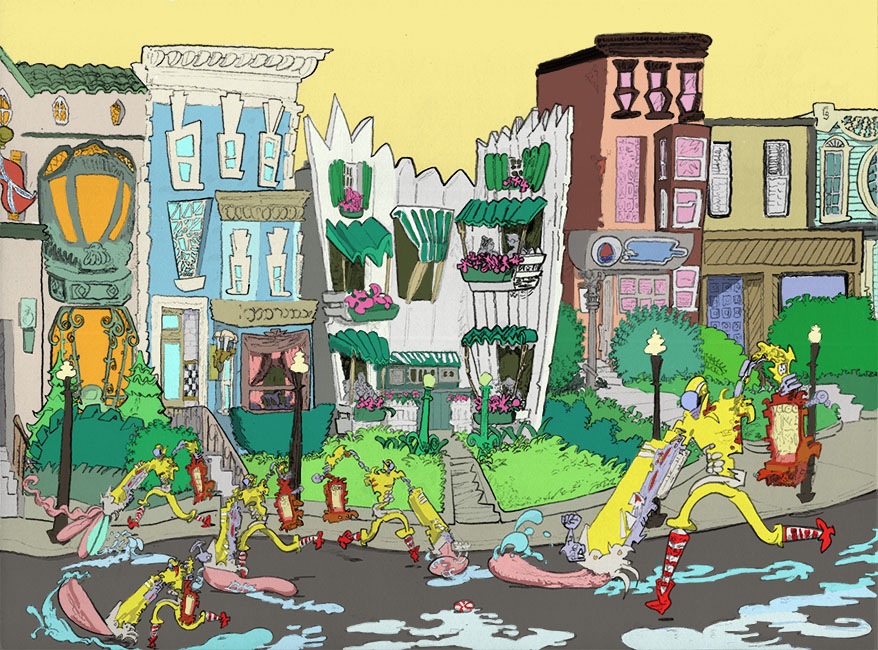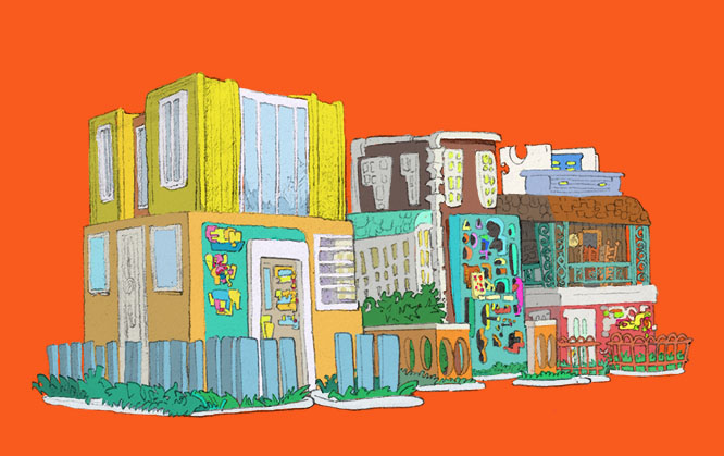 claphouses, ballpoint pen with digital coloring, 2016. |