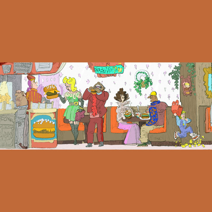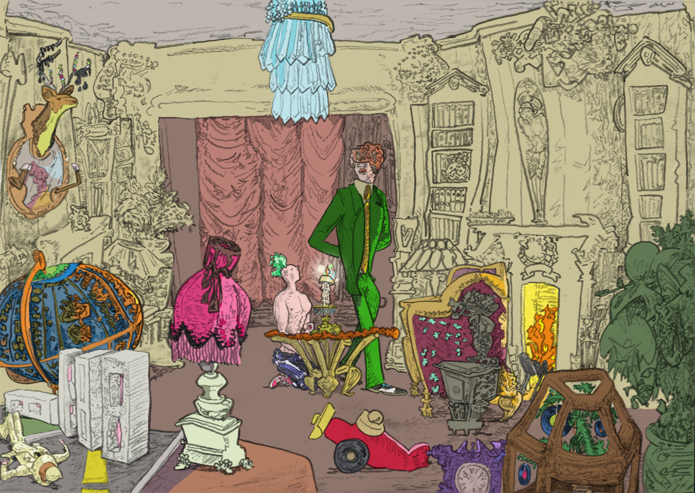 punk parlour, pencil with digital coloring, 2017.