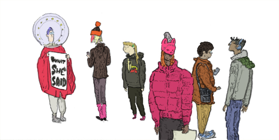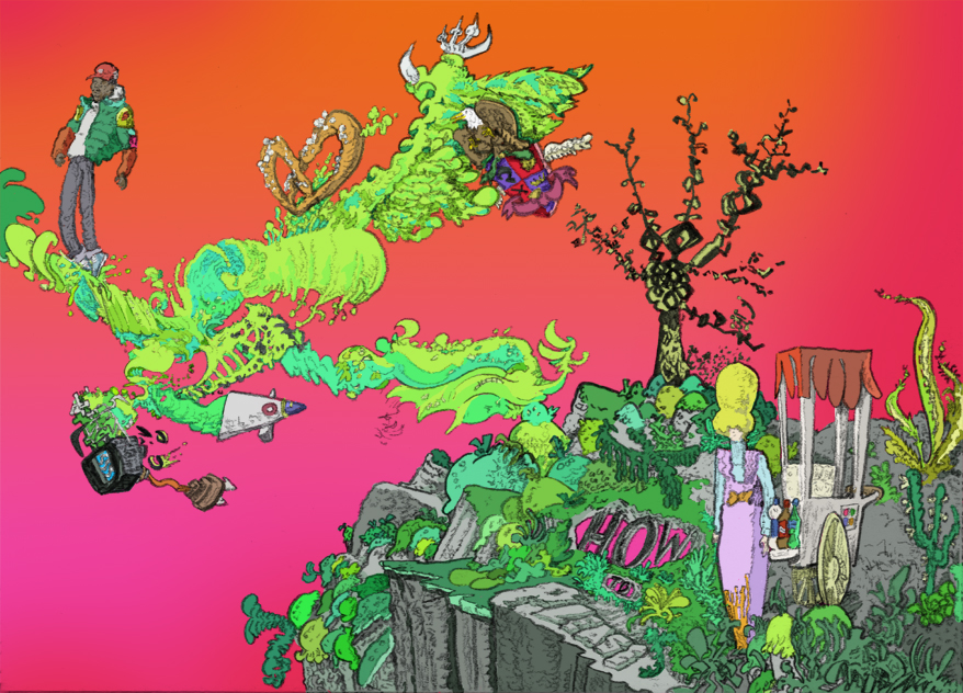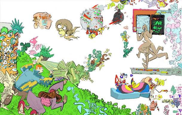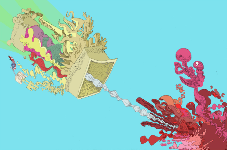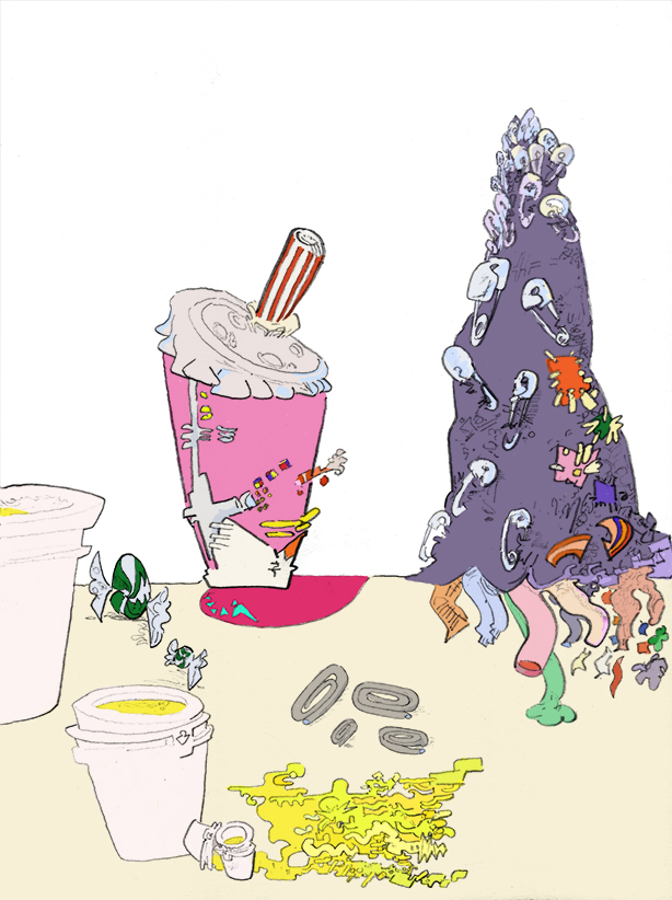 sucker party, ballpoint pen with digital coloring, 2016. |