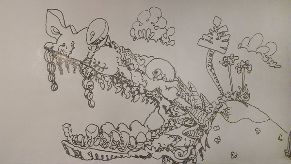 chicken downstairs, ballpoint pen with digital coloring, 2016. |