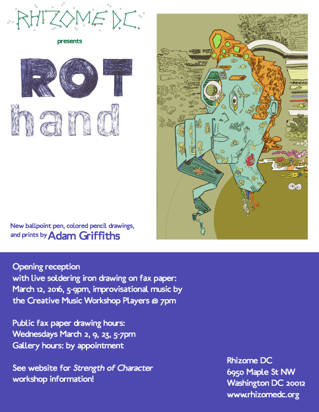 Rot hand, Exhibition of prints and new colored pencil drawings at Rhizome DC, 2016. |
