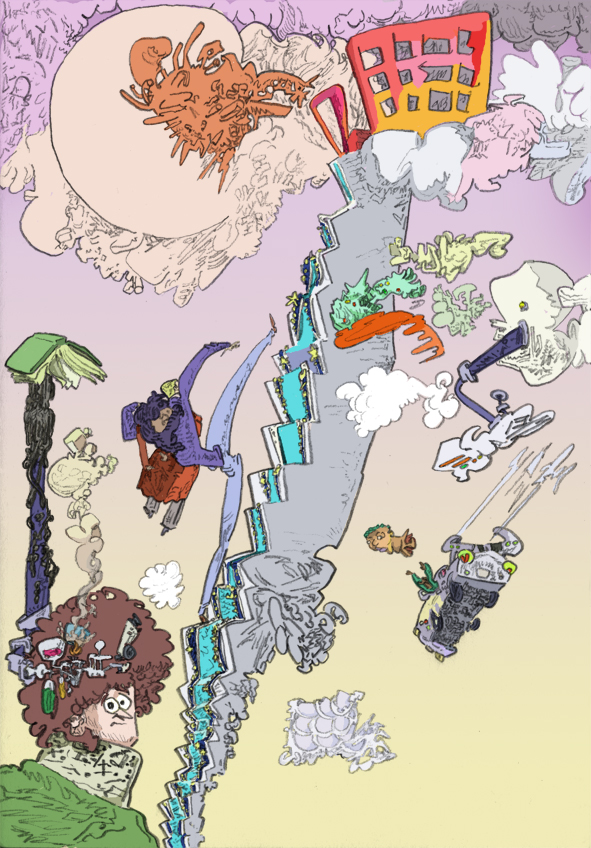 escalatrium, pencil with digital coloring, 2017.