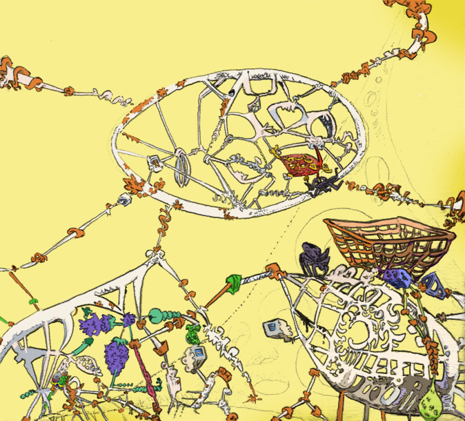 The Symmetrical web, ballpoint pen with digital coloring, 2016. |