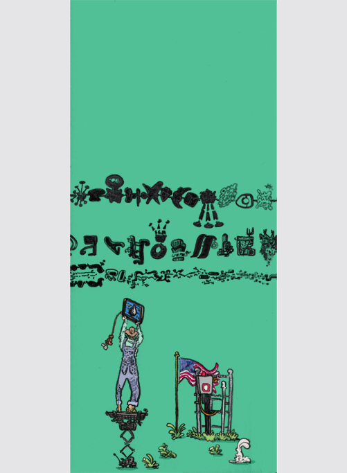Frederick Douglass reincarnates in the animal kingdom, pencil with digital coloring, 2019. | |||