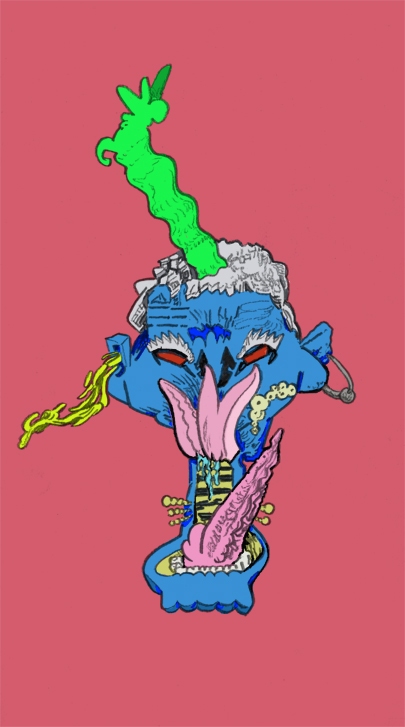 triple tongues, pencil with digital coloring, 2017. |