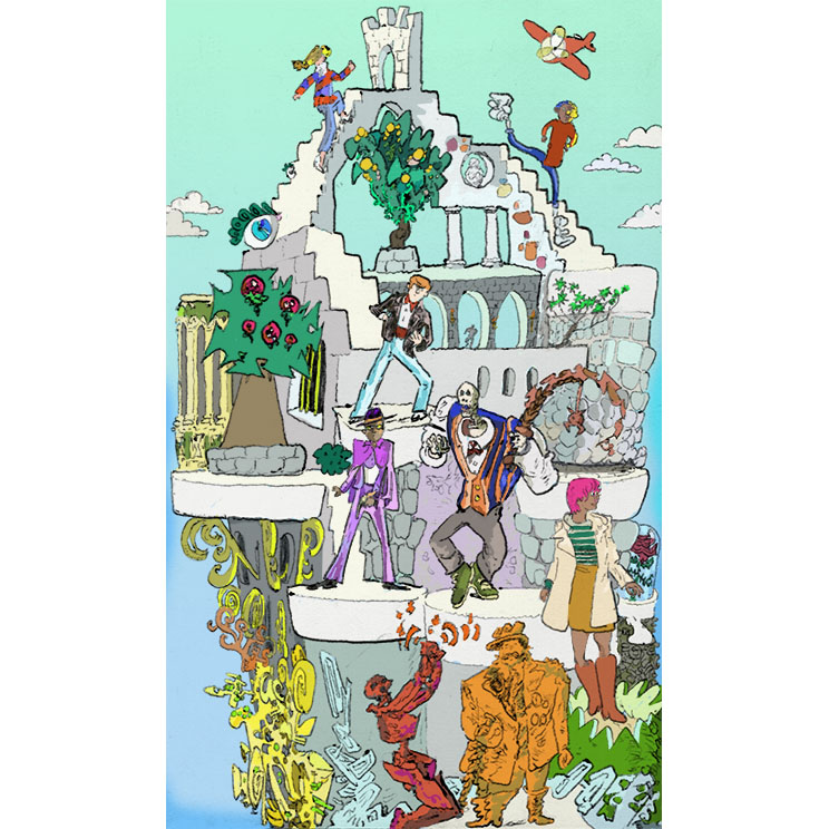 welsh philology, pencil with digital coloring, 2018. | |||