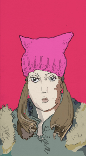 Live cartooning @ Women's March on Washington, pencil with digital coloring, 2017. |
