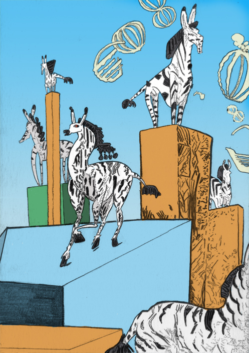 zebrazeuspermutability, ballpoint pen with digital coloring, 2016. |