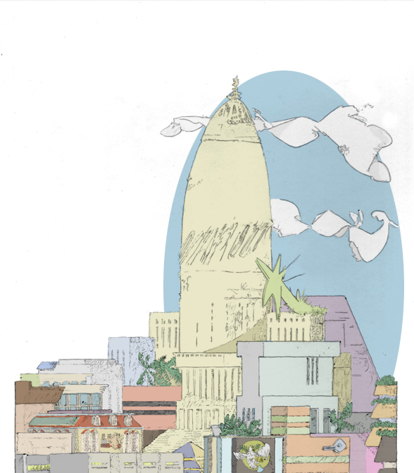 pavillion, pencil with digital coloring, 2017.