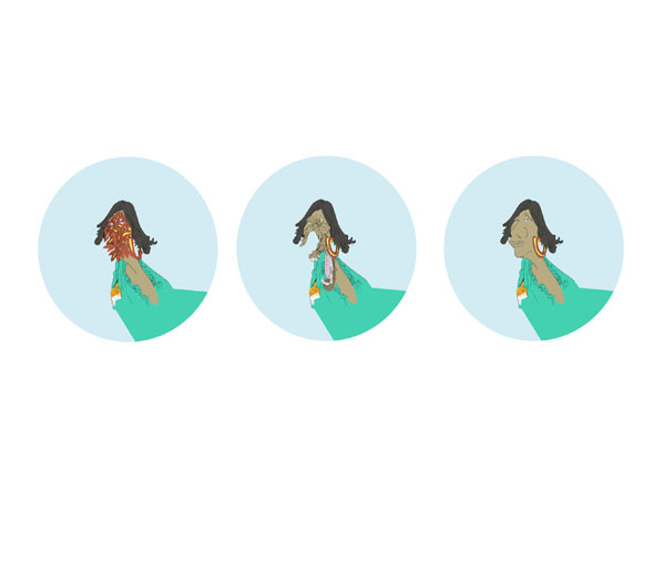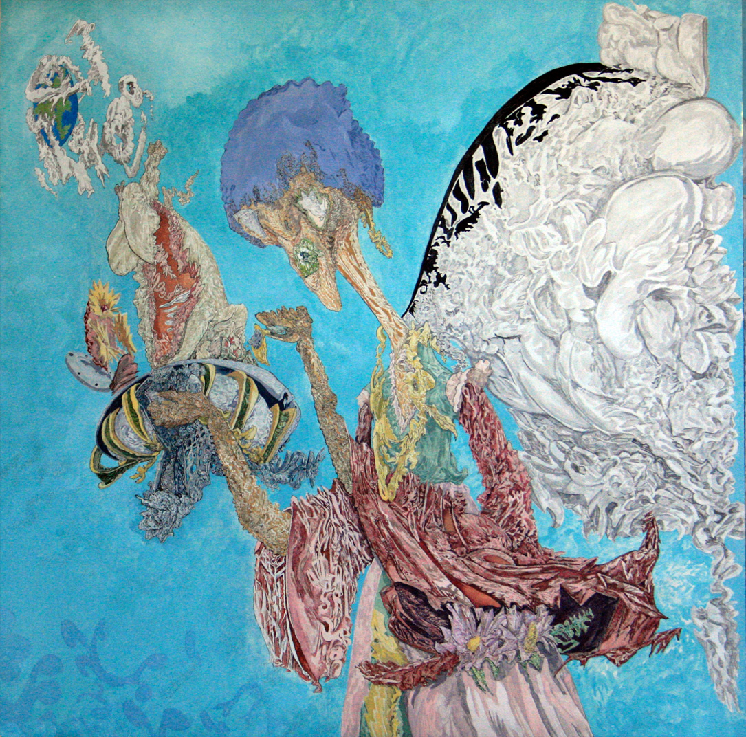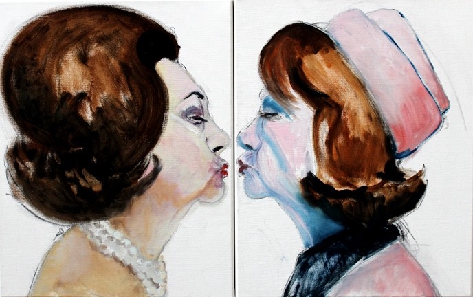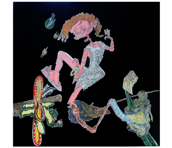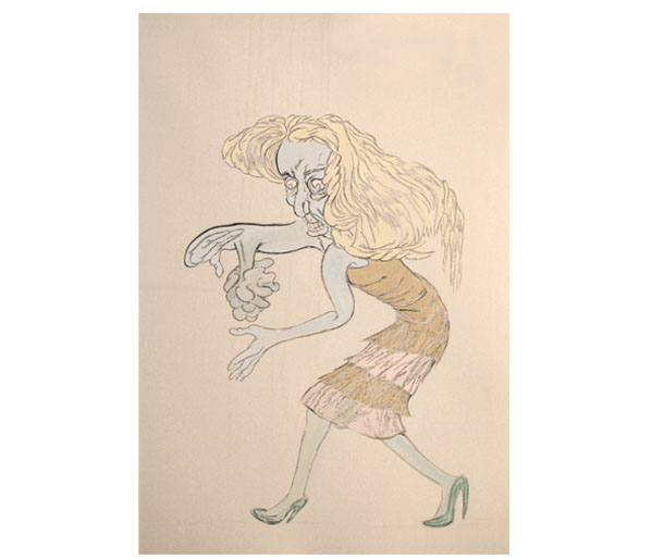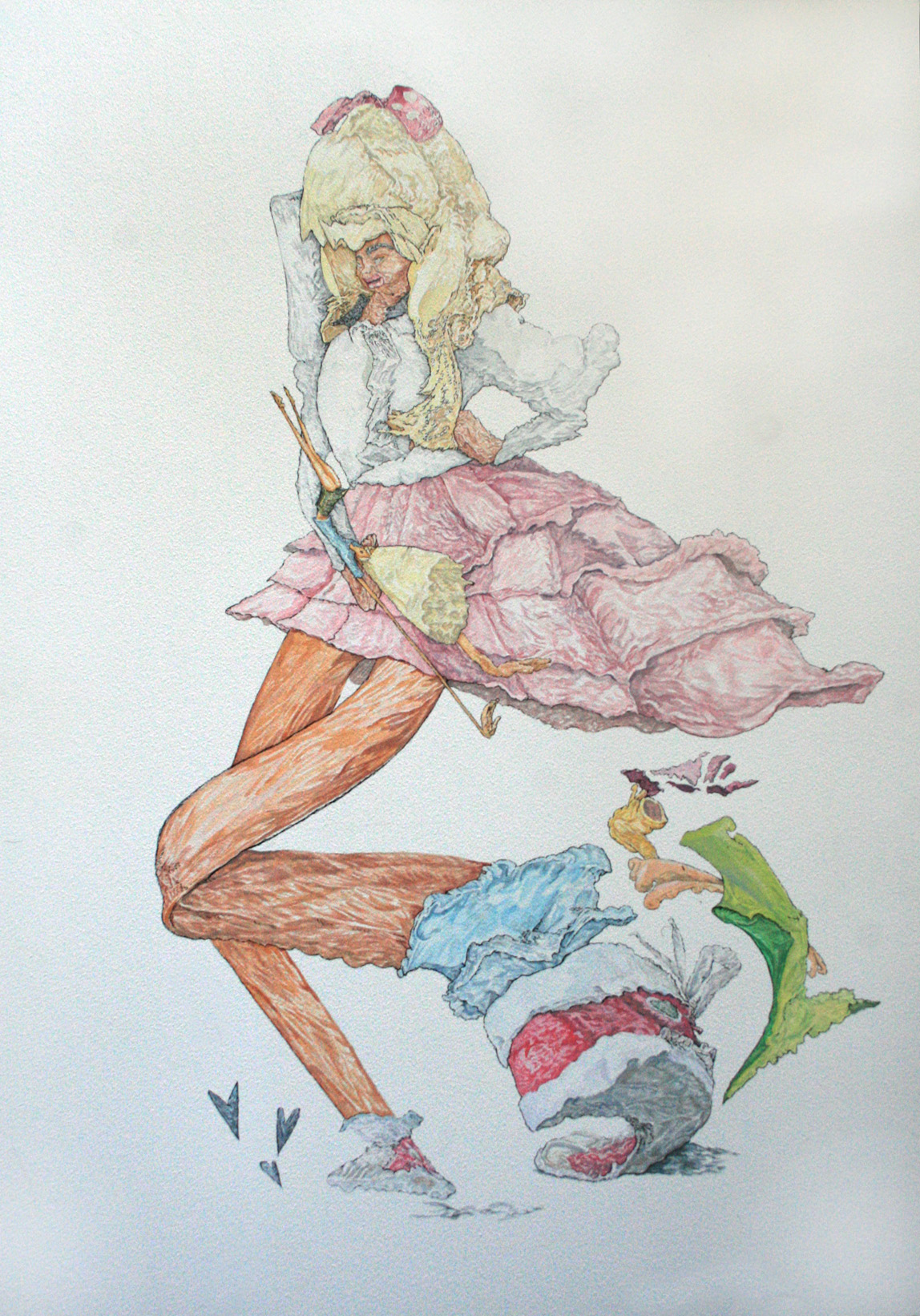 Ellie Smurfnick (dark hearts at her feat), gouache on panel, 2012.