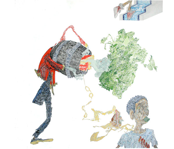 Poyznyn' His Pig (Hole in the nose), Gouache on panel, 2011. |