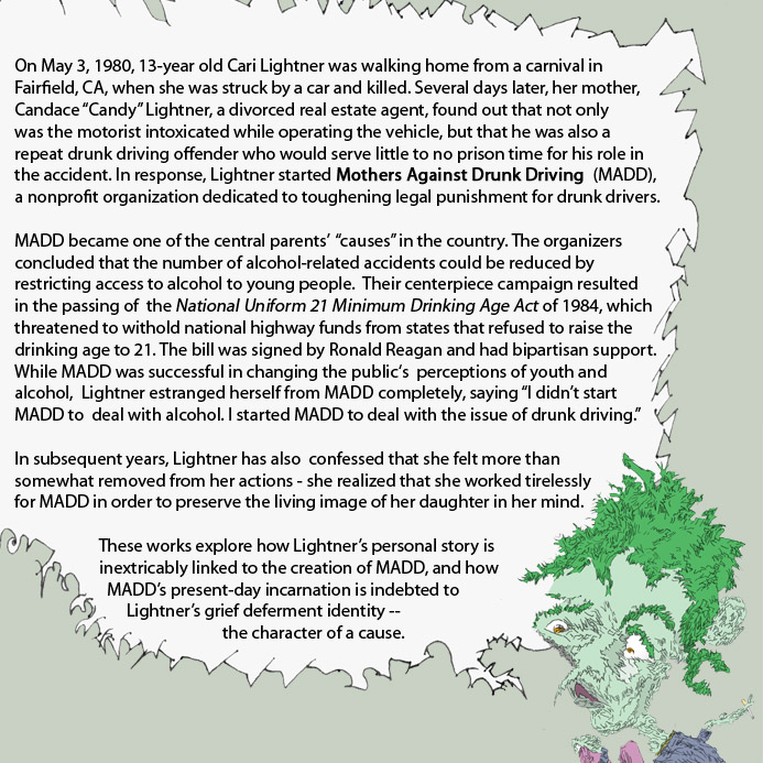 Off in a Corner, Two-person exhibition with Dana Jeri Maier about drinking and adulthood at Flashpoint Gallery, 2011. |