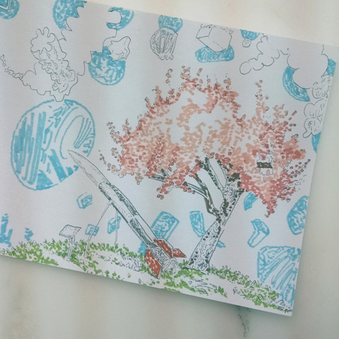 Prints by Norman Strike, painting by Hannah Naomi Kim. |