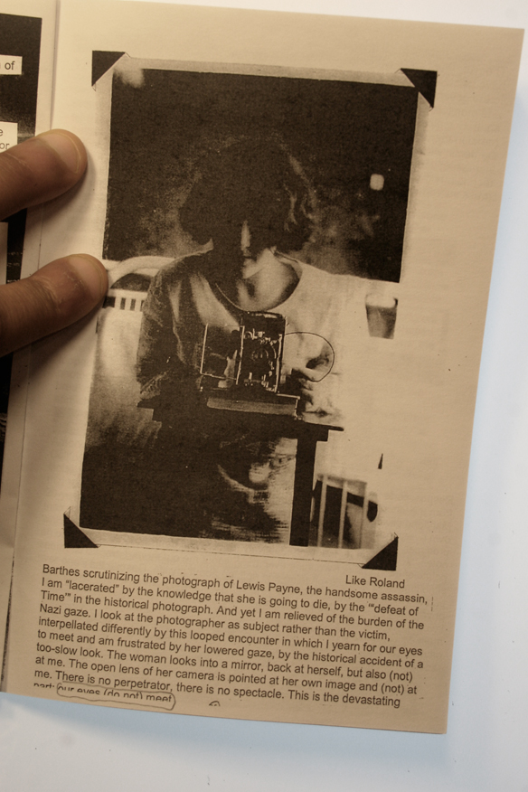 JB: Oh yeah that seems right, I was pretty focused on the idea of “proof” when I made the 'zine, how photographs do and do not reflect reality or truth, how they are used as evidence to make certain claims. |