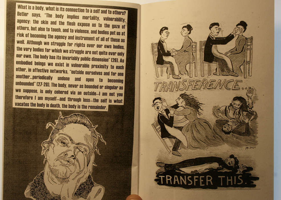 AG: What other ‘zines have you been working on lately? JB: Well, there’s a third issue of The Sinew That Shrinks which is all comics and drawings, and a fourth issue on its way, and I’m still working on Doykeit and Eyshet Chayil which are lefty queer Jewish compilation 'zines, and I’m working on turning the syllabus from a class I’m teaching into a 'zine. All the new stuff will hopefully be ready by the New York Feminist Zinefest in the spring. |