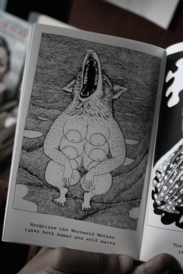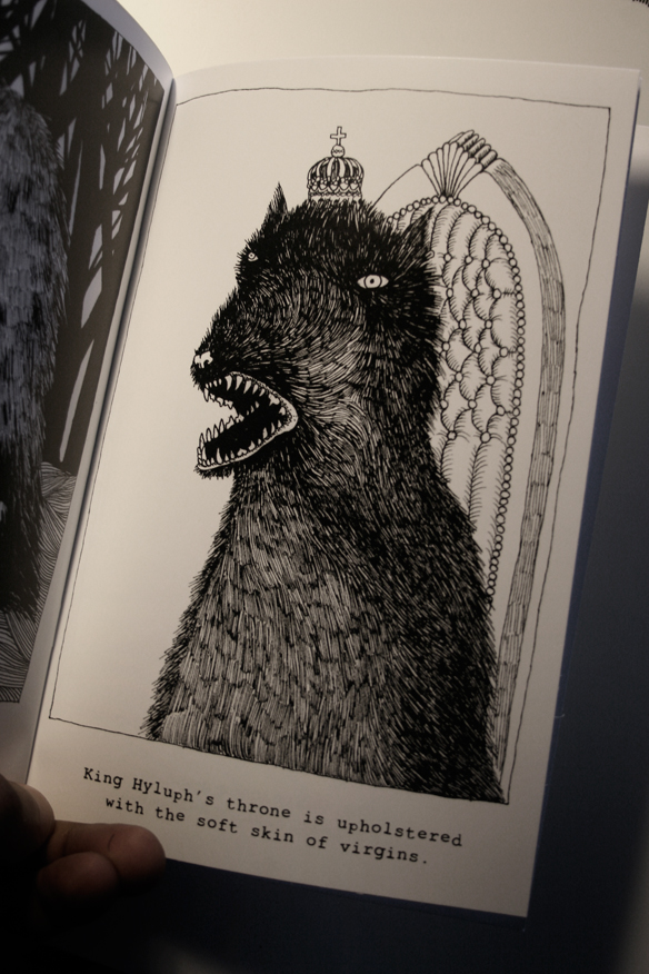 I don’t know that science and sci-fi or magic are necessarily reconciled in my work, but rather I think that all of these subjects are about a similar desire to explain why the world is the way it is, and to answer questions about the unknowable. To me, physics can be absolutely magical and sometimes terrifyng. Most of the statements that physics makes about the world around us are hard for us to wrap our heads around and impossible to observe in everyday life. So it feels a bit like a fairytale or a ghost story. The story of the big bang, if you learn about all of its bizarre steps, seems like a crazy epic poem. In fact, I wrote an epic poem about the creation of the universe, translating the four main “characters” of the big bang (the four fundamental forces: electromagnetism, weak nuclear force, strong nuclear force and gravity) into the four chambers of an elk’s stomach, thereby positing that the universe was created by the hungry tummy of an enormous ungulate.