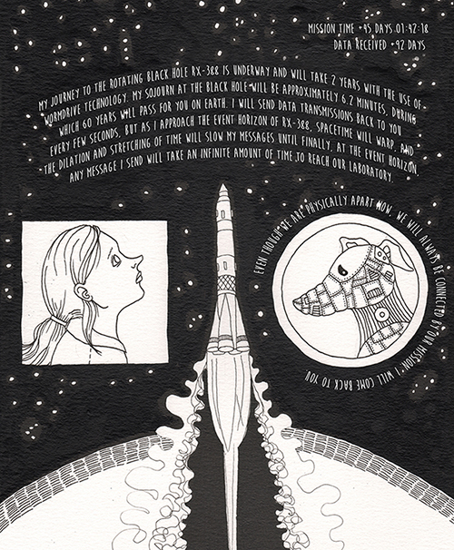 JULIA: When I was a kid my dad would tell me bedtime stories about black holes, infinity, and the absolute nothing that came before the big bang. He would sometimes create talking characters out of astronomical phenomenon or internal organs. So from a really young age I started associating science with narratives, and I never shook that association. So much of the presentation of scientific research is about presenting a story too; in scientific journals there are papers that take the reader through a process that leads from a question to an solution. There are also many concepts of science and math that seem like fascinating metaphors of human relationships (like the way that matter and antimatter annihilate if they touch) or even just wonderfully zany visuals (“a black hole has no hair”). So creating visual stories about science has always come naturally to me.