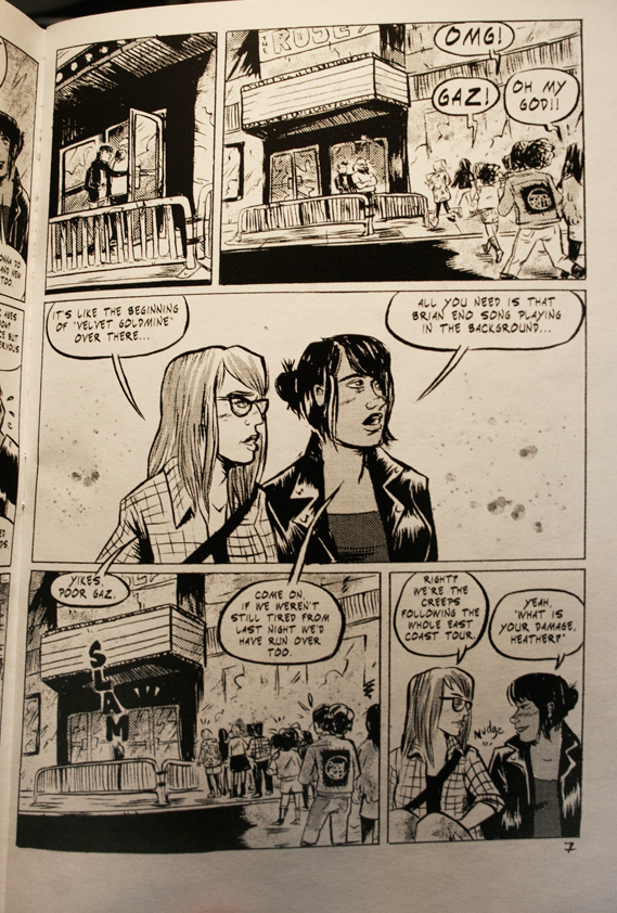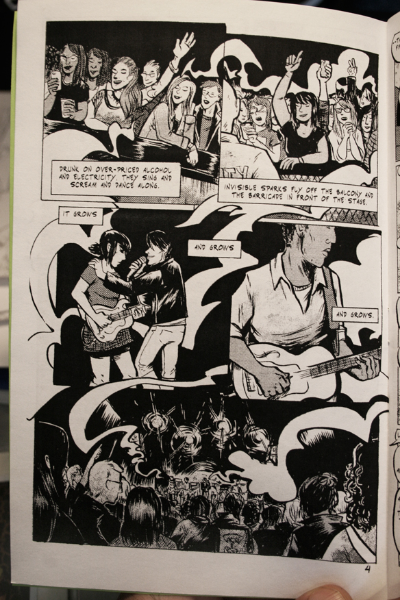 AG: I listened to the tracks from the playlist you provided at the end of the story. I ended up really liking the band, The Crime & City Solution. What song have you listened to most recently from this playlist, and how do you feel it connects to the experience of music in your mini-comic? SC: I've been listening to a similar playlist as I work on Last Song with Holly Interlandi (thru Black Mask, the first issue comes out in May 2017)--it's about the rise & fall of a fictional band in LA in the 90s, so the playlist has been a lot of Placebo, a lot of Rowland S Howard (The Crime & City Solution, The Birthday Party --yes, that one with Nick Cave, These Immortal Souls, and some brilliant solo albums), early Smashing Pumpkins, Manic Street Preachers. For Mysteries in particular I wanted to express the intense emotional experiences and catharsis I've had involving music, especially at live shows-- feeling completely in a moment to the point where time and space don't matter, where you're just overwhelmed with love and joy or sorrow or whatever emotion is being evoked in the song, or with dancing or moshing or keeping your head above the crowd, sharing that experience with your closest friend or total strangers. Or how songs or albums get associated with specific experiences and places and times in your life, that big swell of emotion and longing that you feel. |