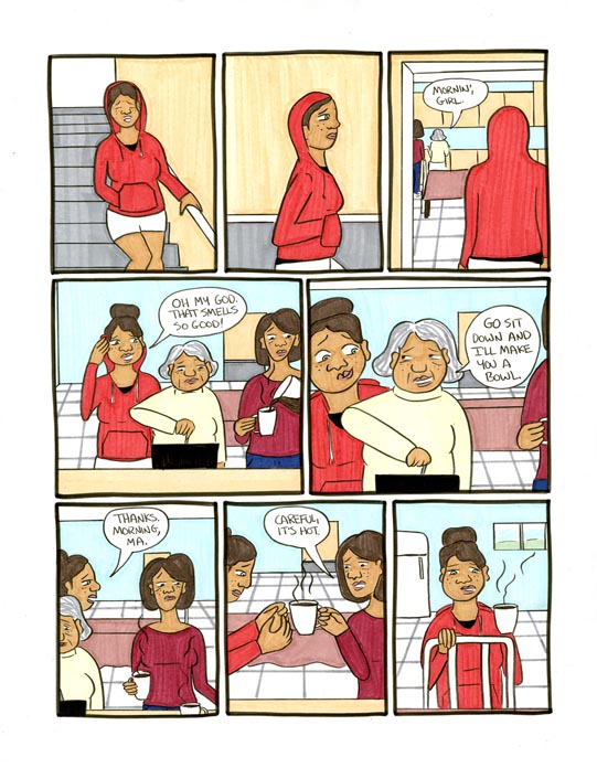 AG: Hi Whit! The first work of yours I ever read was Passing. The comic (no longer available online) struck me as very literary; the pacing in your work is very spare, and your newest work has (to my delight) included even more prose. Would you say this comes from your experience in webcomics or your other reading?